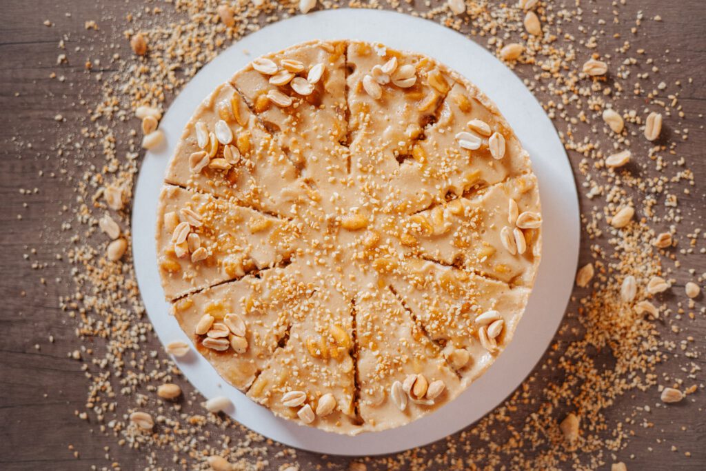 Hühnereier, Erdnussbutter, Kokosmilch, Bambusfaser, 30% Sahne, Mascarpone, Hefe, Vanille, Himalayasalz, Süßungsmittel: Inulin, Erythrit.