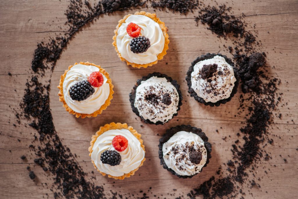 30% Sahne, Mascarpone, Hühnereier, Obst mit niedrigem glykämischen Index, Flohsamenschalen, Mandelmehl, Mandelmilch, Kokosmehl, Rapsöl, Sojamilch, Kokosöl, Himalayasalz, Erythrit, Agar