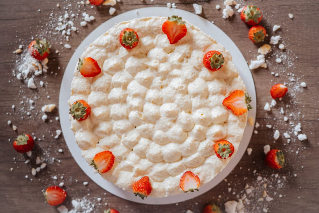 30% Sahne, Mascarpone, Hühnereier, Erdbeeren, Flohsamenschalen, Mandelmehl, Mandelmilch, Kokosmehl, Rapsöl, Sojamilch, Kokosöl, Himalayasalz, Erythrit, Agar