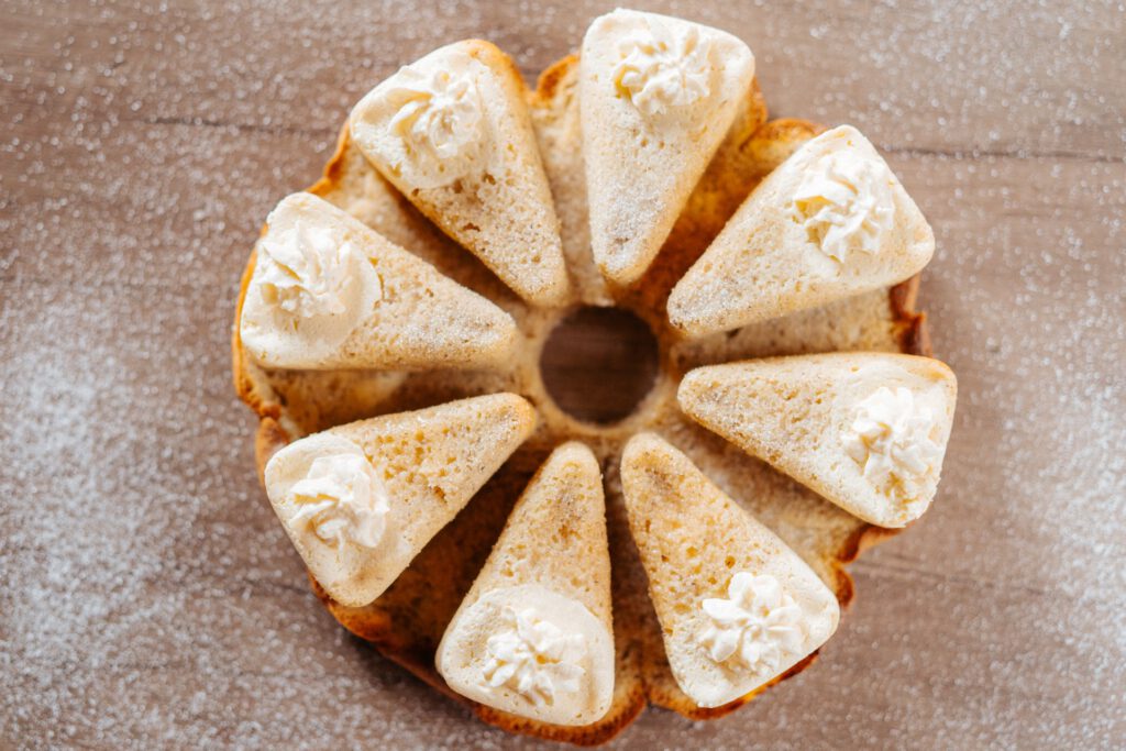 Hühnereier, Mandelmilch, Kokosmehl, Rapsöl, Kokosöl, Keto Cake Weiße Schokolade*, Himalayasalz, Süßungsmittel: Erythrit