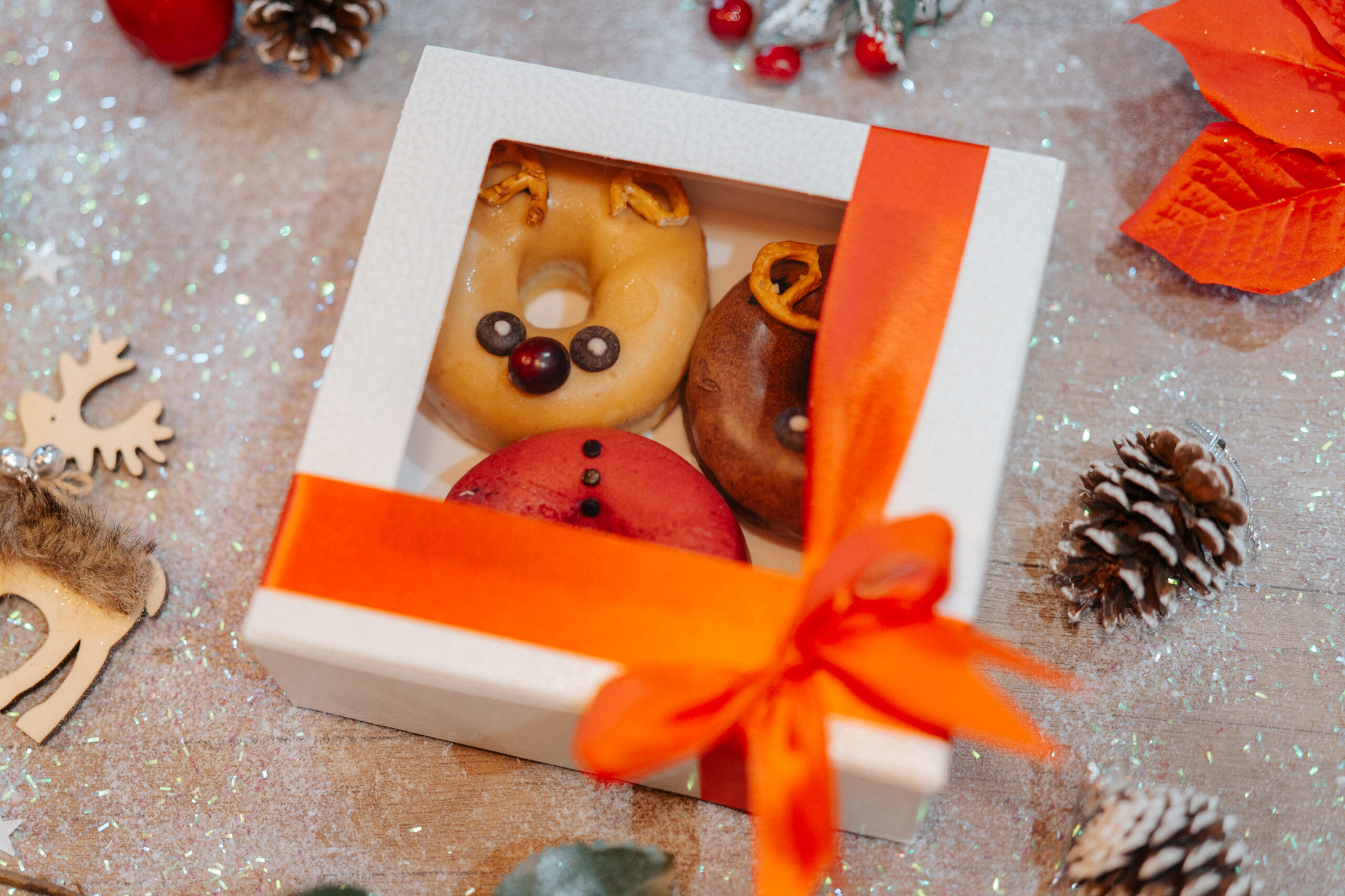 Wpadliśmy też na pomysł keto-prezentu pod choinkę. Wybierając się do kogoś w Święta z wizytą zazwyczaj przynosimy słodycze, szczególnie jeśli są tam dzieci: czekoladowego Mikołaja, paczkę pierniczków czy cukierków. Postanowiliśmy przełamać tę niezdrową tradycję. Zamiast pełnych cukru przemysłowych wyrobów proponujemy, by podarować gospodarzom pudełko donutów “przebranych” za Mikołaje i renifery, z polewami o smaku słonego karmelu, owoców leśnych czy białej czekolady. Do wyboru są też nasze fit słoiczki w bożonarodzeniowej wersji: Pierniczkowe Tofumisu, Deser a’la pierniczki alpejskie. W słoiczki zapakowaliśmy też keto-kutię. W grudniu na półkach niecukierni Fit Cake znajdziecie też specjalne ciasta bez dodatku cukru i bezglutenowe torty.