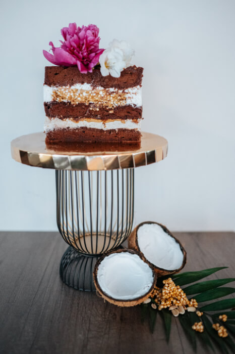 Kokosmilch, Buchweizenmehl, Maisstärke, Kartoffelmehl, Rapsöl, Kokosöl, Hirse, Kakao, Erdnüsse, Datteln, Carob, Himalayasalz, Süßungsmittel: Erythrit.